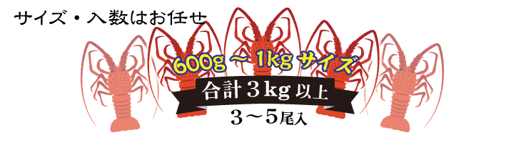 表示されたラベルの重量は合計です。同じ位のサイズの伊勢海老を合計の重さでセットしています。